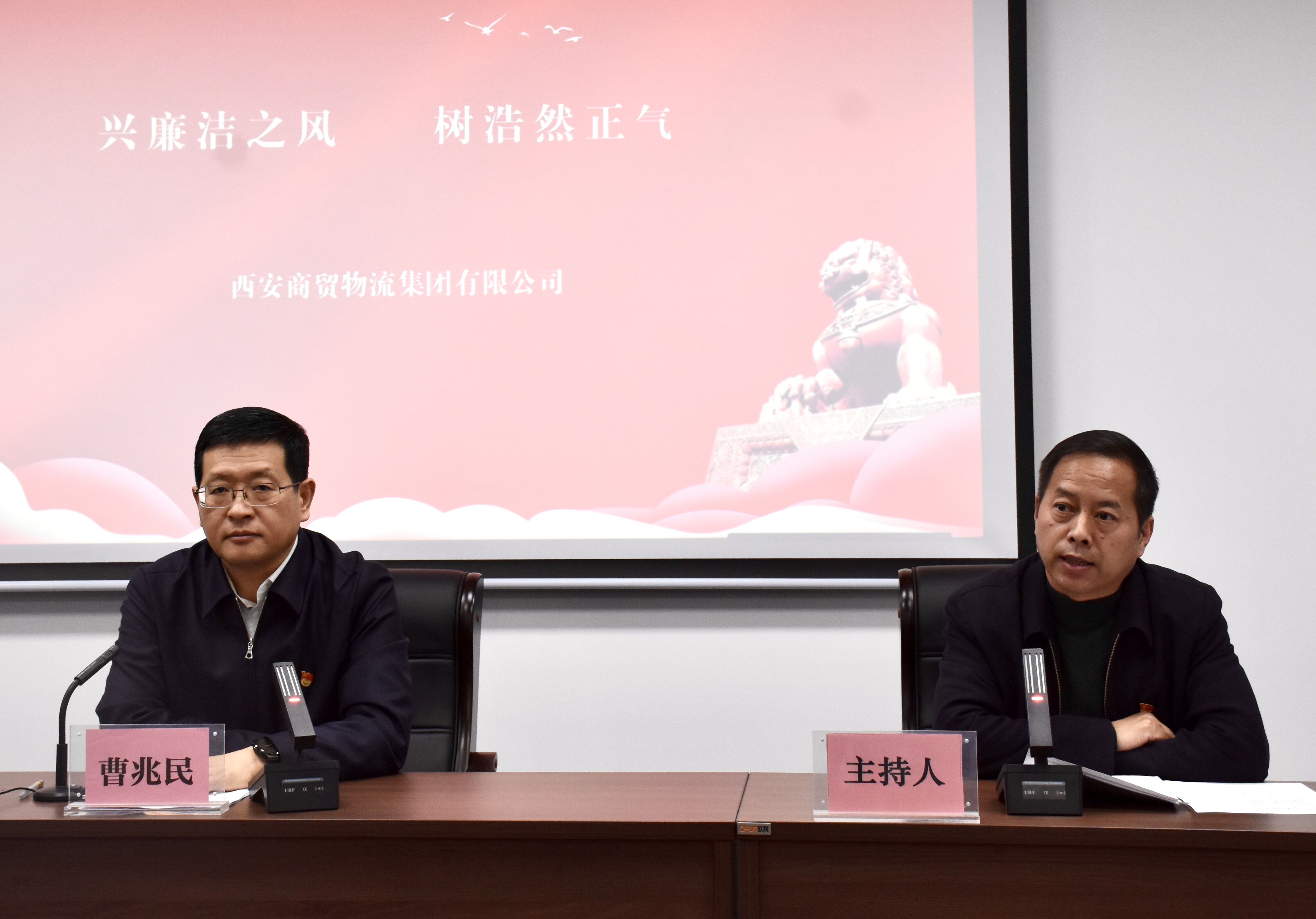 12月2日,西安商貿(mào)物流集團黨委書記、董事長曹兆民以《以案促改抓作風 推進清廉企業(yè)建設(shè)》為題,為集團黨員干部講授專題廉政黨課,集團黨委委員、副總經(jīng)理雷春龍主持。